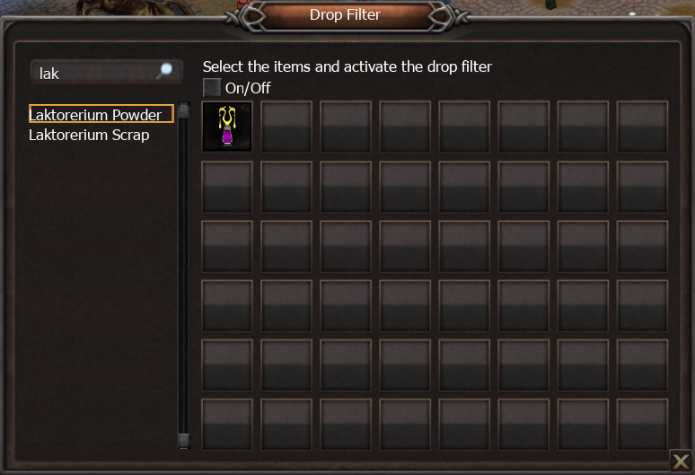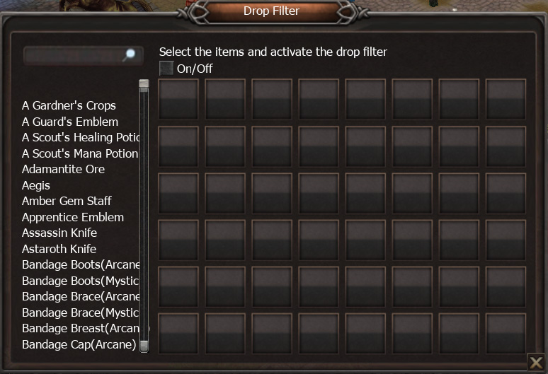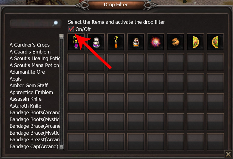 After selecting your desired items, click the On/Off button to enable or disable the Drop Filter.
